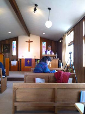 平成6年 筑田牧師が以前担当なさっていた教会で、その日はたまたま筑田牧師が羽村教会で午前中の礼拝を終了した後、特急あずさで諏訪教会へいらして礼拝を担当するという日だった。私は1日前にあずさで諏訪入りして、諏訪博物館や高島城、下諏訪大社、万治の像や御柱資料館などの観光をしてrakoに泊まり、翌日も午前中観光できて、駅でお待ち合わせ。筑田牧師と出会い、お迎えの方とご一緒に教会へお連れいただいた。